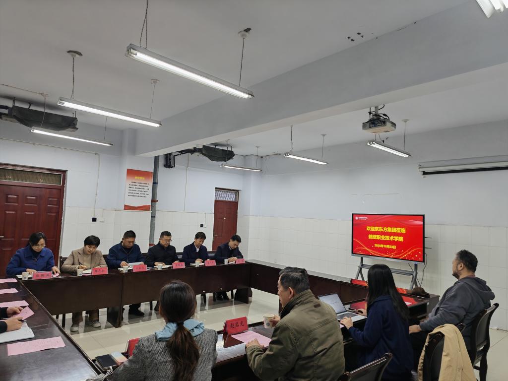 10月23日上午,京东方科技集团股份有限公司人力资源专家中心培训经理张司伦一行到我校就深化校企合作、促进学生实习就业等问题进行交流座谈。座谈会在智能制造学院会议室召开,学校党委委员、工会主席杜永庆,教务处处长侯铁兵,招生就业处处长周志红,智能制造学院党总支书记崔国英、院长李鑫,建筑设计与工程学院党总支书记秦现军等出席会议。